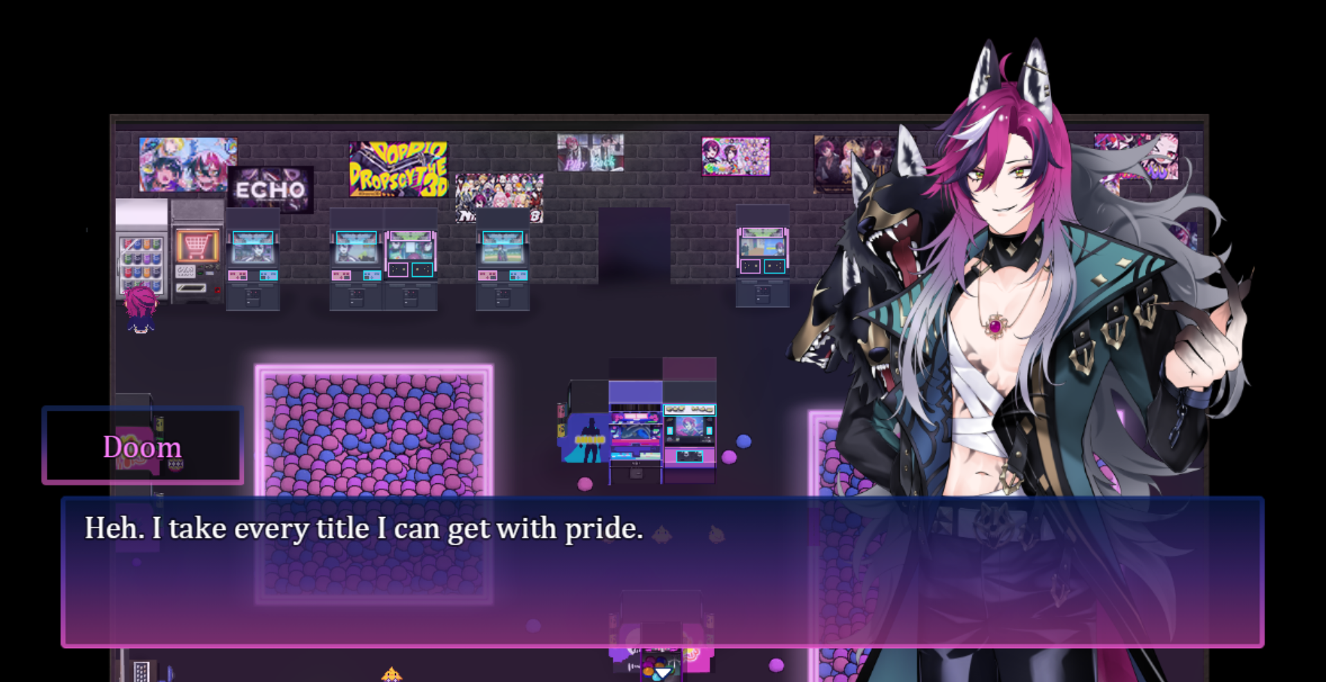 Saito is an RPGMaker based around one of Doppio's OC, Saito-san, exploring the Doppioverse through the eyes of a normal person! It is inspired by Doppioと大切な宝物 (Doppio and the Precious Treasure) and the variety of goofy one-off games Doppio likes to play.
